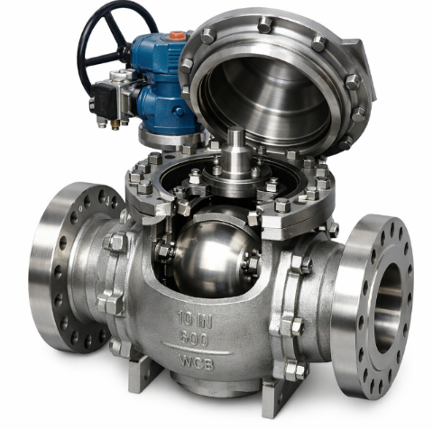 When the actuator or manual operator turns the stem, the trunnion-mounted ball rotates 90 degrees to open or close the valve. The seats are spring-loaded or pressure-energized to maintain tight sealing. Because the valve bonnet can be removed from the top, internal inspection or seat replacement can be performed in-line, without cutting or dismantling the pipeline.